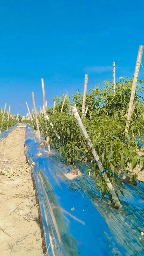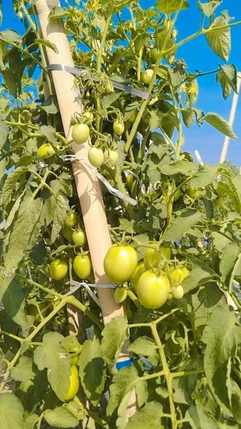 Pada hari Senin ( 15 /09/2025 ) Usia tanaman cabai 40 hari dengan tumpang sari tanaman tomat usia 45 hari yang sudah berbuah dengan zize besar, pengisian kolam penampungan air dan sedang mengikat tanaman tomat biar gak roboh.