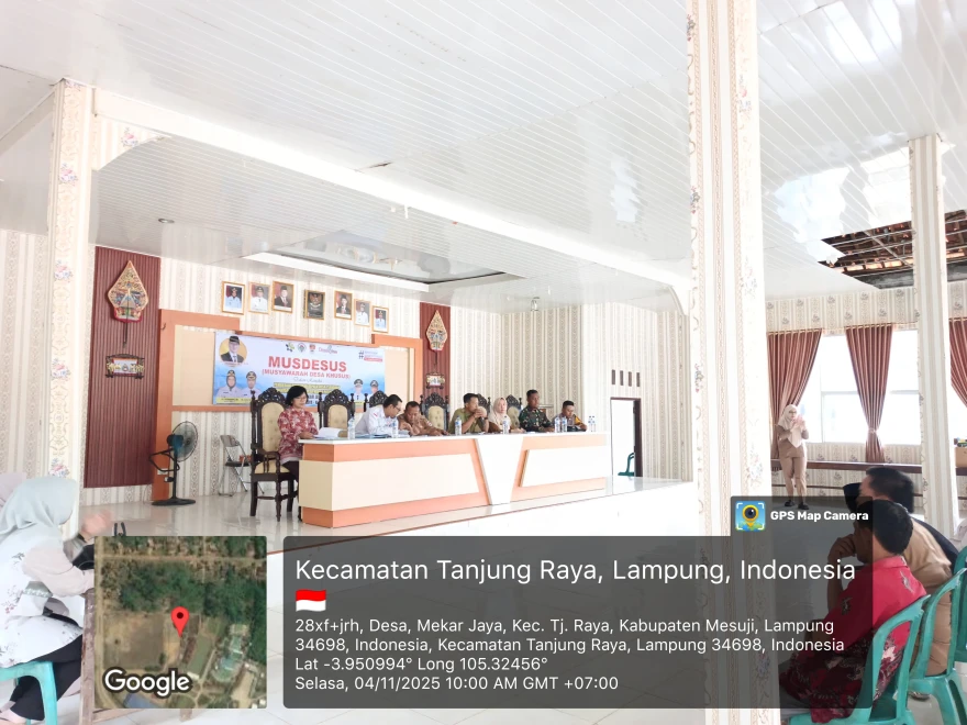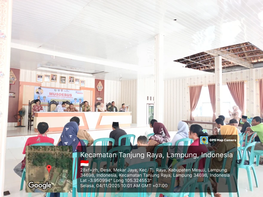 Pemerintah Desa Mekar Jaya melaksanakan Musyawarah Desa Khusus (Musdesus) pada Selasa, 4 November 2025, dalam rangka pemberian dukungan Kepala Desa terhadap pembiayaan Koperasi Desa Merah Putih.