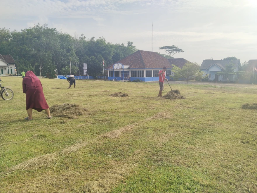 Sejak pagi, warga dan aparatur desa bahu-membahu membersihkan lingkungan, merapikan rumput, memperbaiki beberapa fasilitas yang rusak, serta menata area lapangan agar terlihat lebih rapi dan nyaman. Suasana kerja bakti berlangsung penuh antusias dan kekompakan, mencerminkan nilai-nilai kebersamaan serta kepedulian terhadap lingkungan.
