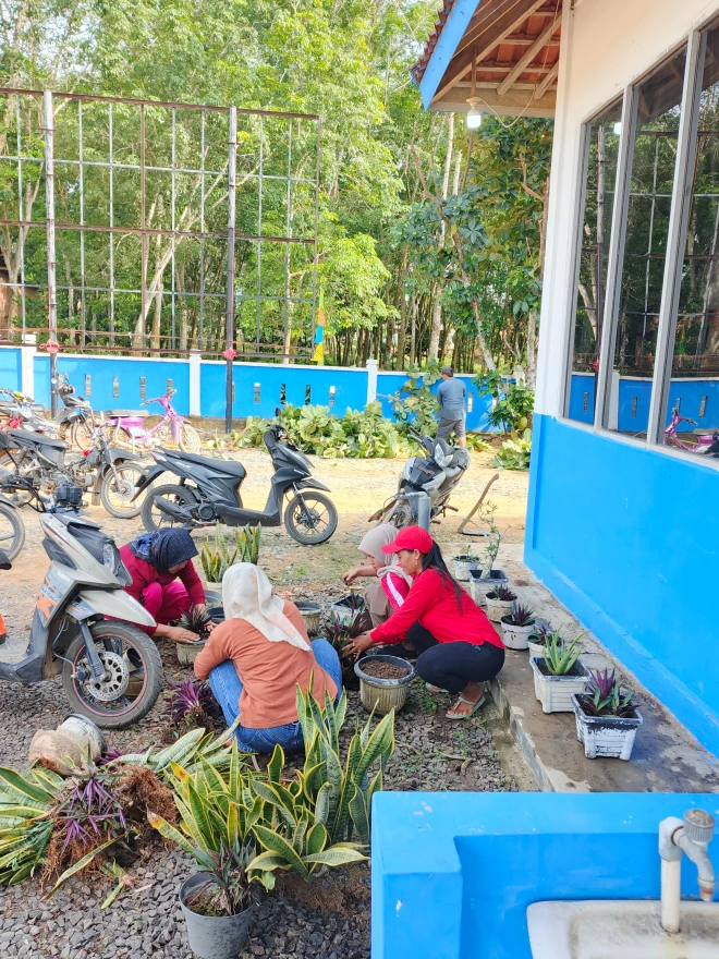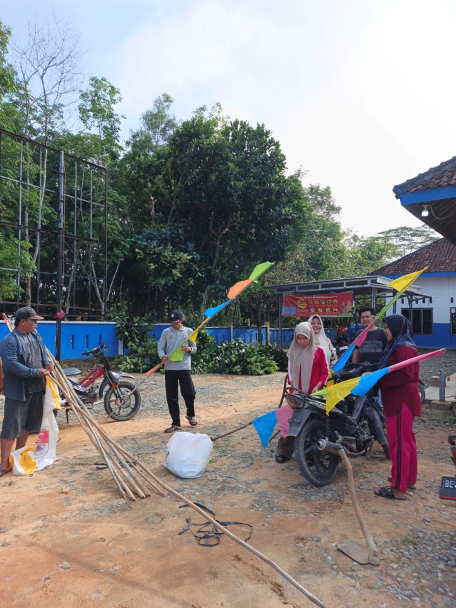 Semangat Gotong Royong Aparatur Desa Mekar Jaya di Lingkungan Balai Desa