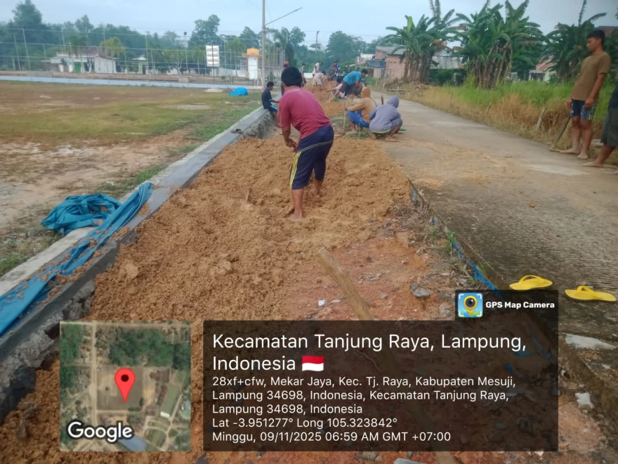 Semangat kebersamaan warga Desa bersama aparatur Desa Mekar Jaya kembali terlihat dalam kegiatan gotong royong yang dilaksanakan pada hari ini di area sekitar lapangan sepak bola desa. Kegiatan ini dilakukan sebagai bentuk persiapan dan dukungan masyarakat dalam menyambut Hari Ulang Tahun Kabupaten Mesuji yang ke-17.