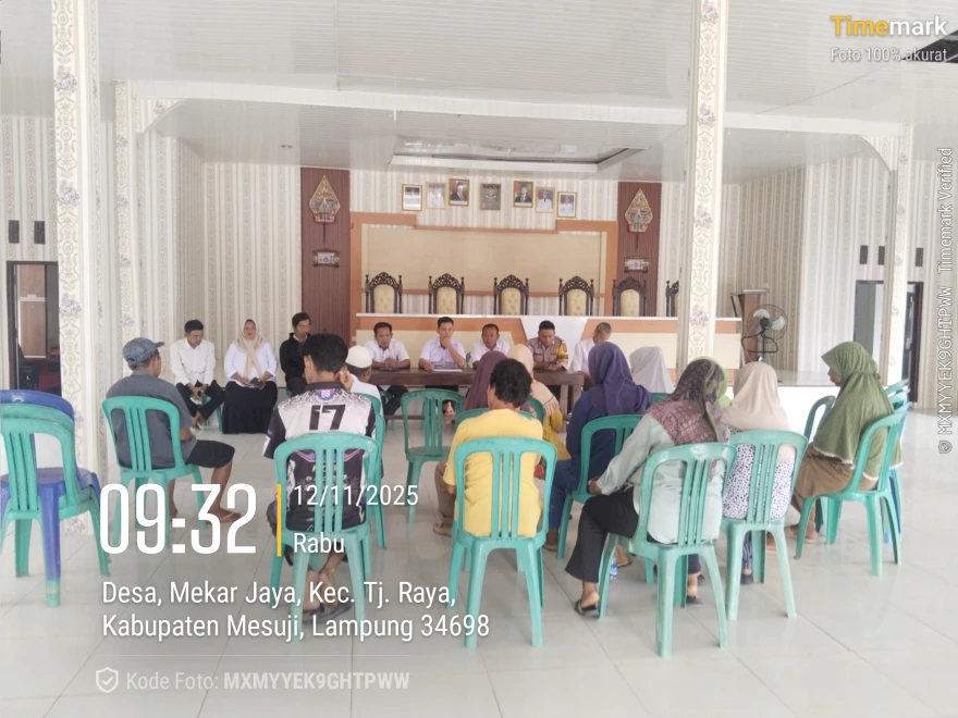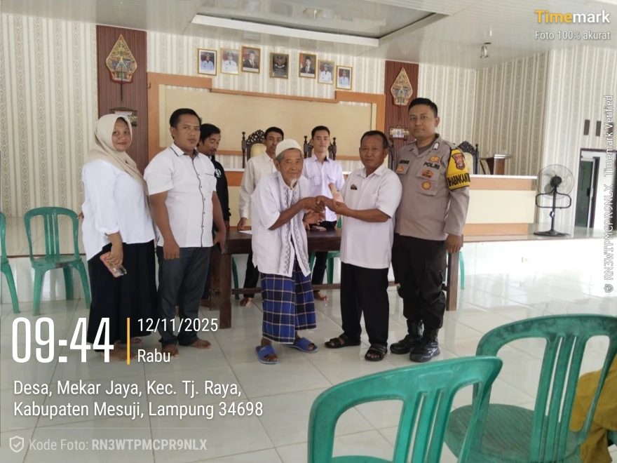 Pemerintah Desa Mekar Jaya melaksanakan kegiatan pembagian Bantuan Langsung Tunai (BLT) Dana Desa tahap 4 tahun 2025 kepada masyarakat yang berhak menerima. Kegiatan ini berlangsung di Balai Desa Mekar Jaya dan dihadiri oleh Kepala Desa beserta perangkat desa, pendamping desa, dan Bhabinkamtibmas.